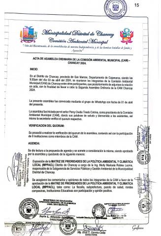 Acta de elaboración y aprobación de la Matriz de Prioridades Local Chancay - San Marcos (2024)