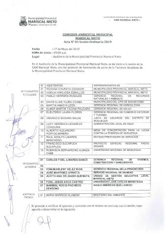 Acta de la Tercera sesion de la CAM Mayo 2019 - Municipalidad Pr Mariscal Nieto