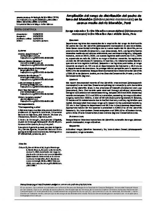 Ampliación del rango de distribución del pecho de luna del Marañón (Melanopareia maranonica) en la cuenca media del río Marañón, Perú