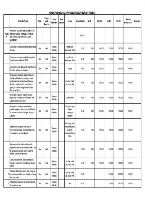 Programas y Proyectos de la Unidad Formuladora de la Gerencia Regional de Recursos Naturales y Gestión del Medio Ambiente
