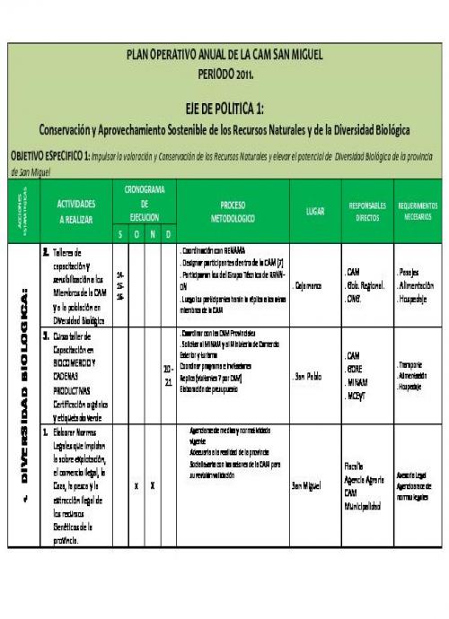 PLAN OPERATIVO ANUAL 2011 DE LA CAM SAN MIGUEL
