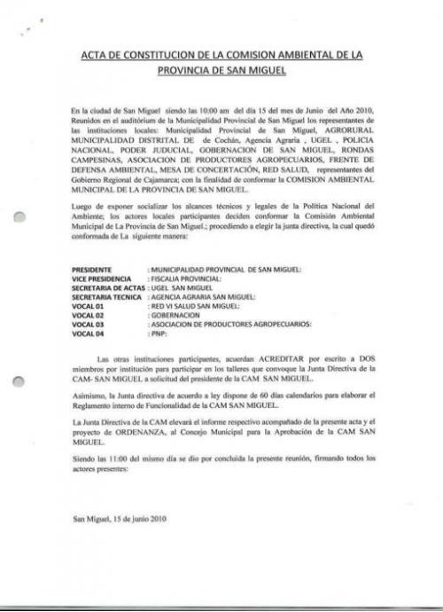 Acta de Constitucion de la CAM Provincia de San Miguel