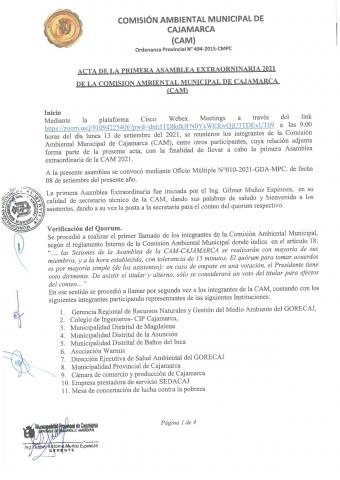 La CAM Cajamarca viene constituyéndose como unas de las primeras CAM a nivel regional en lograr la concertación participativa de las Prioridades Ambientales, proceso que cuenta con el acompañamiento del Gobierno Regional, y proporciona claridad en el conocimiento de los problemas ambientales de impacto regional y su ruta estratégica de solución, a fin de que los actores involucrados en la gestión ambiental provincial desplieguen acciones articuladas en atención a ellas.