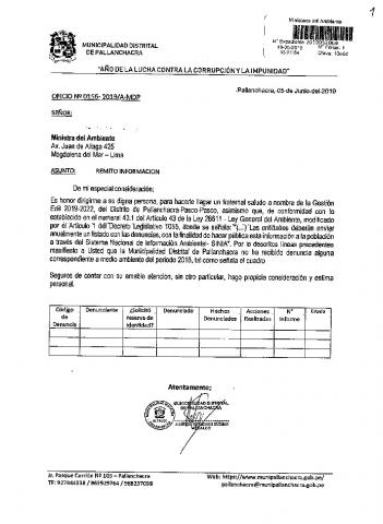 Denuncias ambientales 2018 Municipalidad Distrital de Pallanchacra