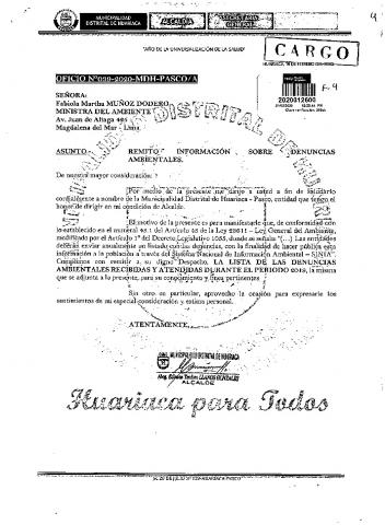 Denuncias ambientales 2019 Municipalidad Distrital de Huariaca