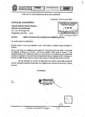 Denuncias ambientales 2019 Municipalidad Distrital de San Francisco de Asis de Yarusyacan