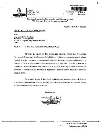 Información sobre denuncias ambientales de la Municipalidad Distrital de Sabandía