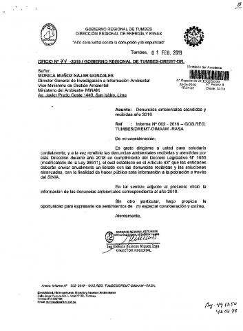 Denuncias ambientales atendidas y recibidas año 2018. Gobierno Regional de Tumbes
