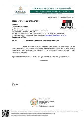 Denuncias ambientales recibidas el año 2019 por parte de la Dirección Regional de Energía y Minas de San Martín