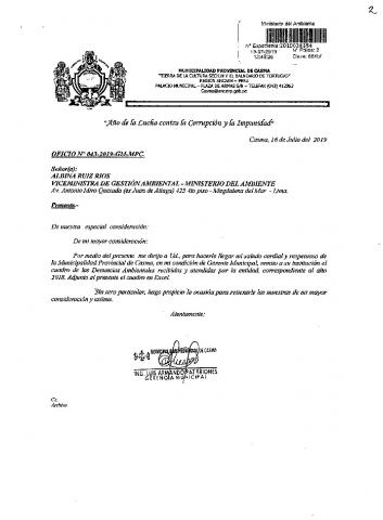 DENUNCIAS AMBIENTALES RECIBIDAS, CORRESPONDIENTE AL PERIODO 2018 MUNICIPALIDAD PROVINCIAL DE CASMA