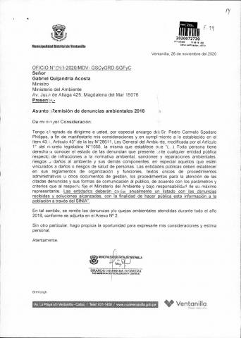 Información sobre denuncias ambientales de la Municipalidad Distrital de Sabandía