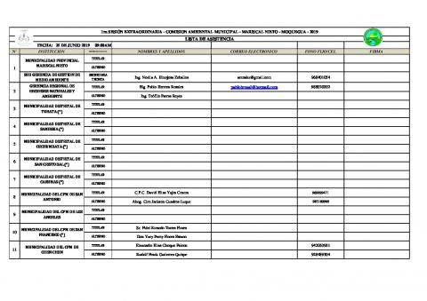 En el presente documento, procedo a su enviar el directorio actualizado a la Comision Ambiental Municipal de Moquegua del presente año (2019).