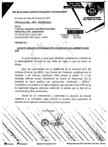 Información sobre denuncias ambientales de la Municipalidad Distrital de Sabandía