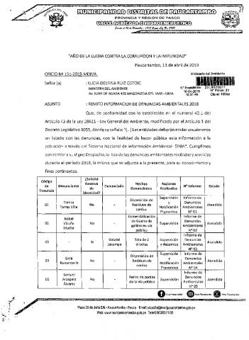 Información de denuncias ambientales 2018 Municipalidad Distrital de Paucartambo