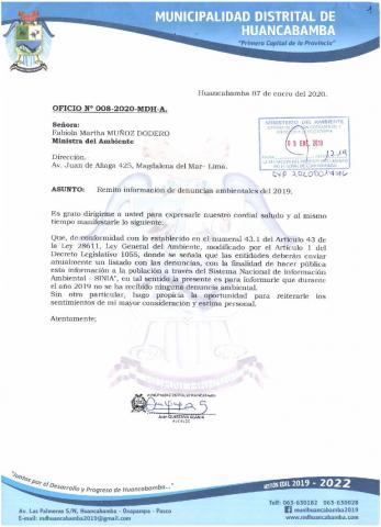 Información de denuncias ambientales del 2019. Municipalidad Distrital de Huancabamba