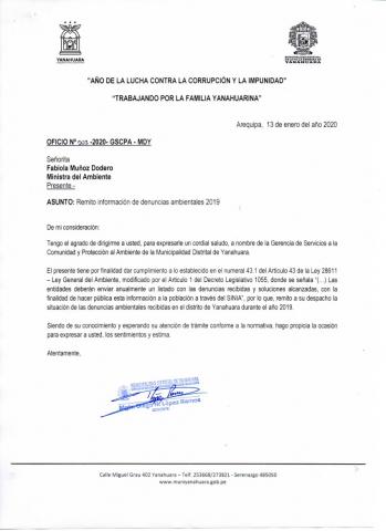 Información de denuncias ambientales 2019 Municipalidad Distrital de Yanahuara