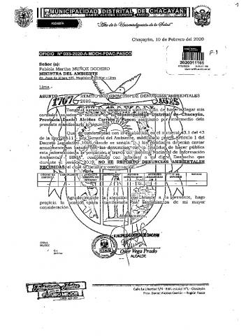 Información de denuncias ambientales 2019 Municipalidad Distrital de Chacayan