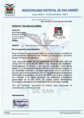 Información de Denuncias Ambientales 2019 de la Municipalidad Distrital de San Andrés