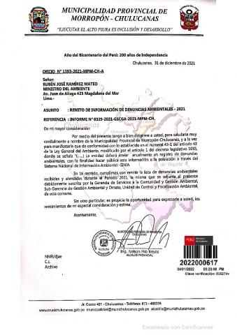 Información de denuncias ambientales - 2021 de la Municipalidad Provincial de Morropón - Chulucanas
