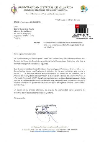 Información de denuncias ambientales del año 2020 presentadas ante la Municipalidad Distrital de Villa Rica