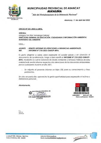 Informe de atenciones a denuncias ambientales año 2021 de la Municipalidad Provincial de Abancay