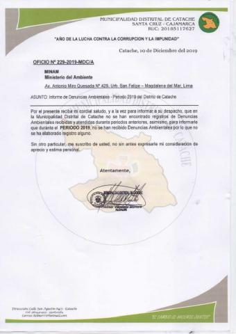 Informe de denuncias ambientales 2019 del Distrito de Catache