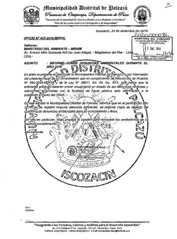 Informe sobre denuncias ambientales durante el año 2019. Municipalidad Distrital de Palcazú