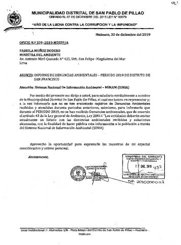 INFORME DE DENUNCIAS AMBIENTALES - PERIODO 2019 DE DISTRITO DE SAN FRANCISCO