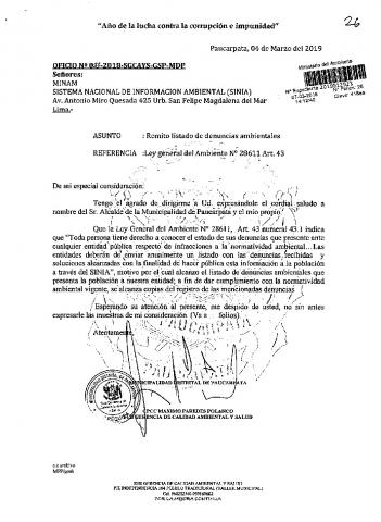 Información sobre denuncias ambientales de la Municipalidad Distrital de Sabandía
