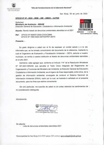 Denuncia ambiental 2022 de la Municipalidad Provincial de Yungay