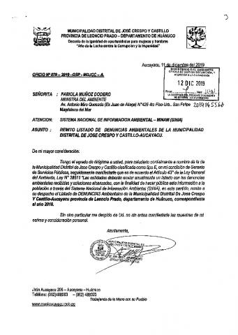 LISTADO DE DENUNCIAS AMBIENTALES DE LA MUNICIPALIDAD DISTRlTAL DE JOSE CRESPO y CASTILLO·AUCAYACU.