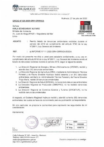 Informe anual de atención de denuncias ambientales 2020 de la Municipalidad Distrital de Talavera