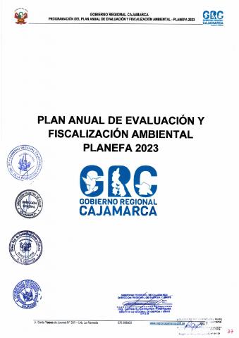 Plan Anual de Evaluación y Fiscalización Ambienta PLANEFA 2023 del Gobierno Regional Cajamarca