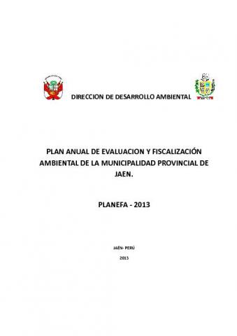 Plan Anual de Evaluación y Fiscalización Ambiental PLANEFA de la Municipalidad Provincial de Jaén 2013