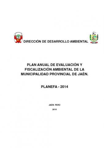 La Municipalidad Provincial de Jaén encarga a la Dirección de Desarrollo Ambiental las competencias y funciones de evaluación, supervisión, fiscalización y sanción en materia ambiental, establecidas por los documentos de Gestión el ROF y MOF, aprobado por Ordenanza Municipal 012-2011-MPJ Y dentro de ello esta el PLANEFA para evaluar el Impacto Ambiental y proponer medidas de prevencion, mitigacion o control adecuado.