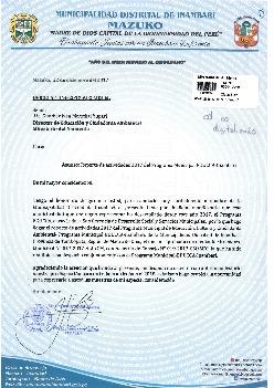 La Municipalidad Distrital de Inambari remite al MINAM las actividades desarrolladas el 2017 en el marco del Programa Municipal EDUCCA-Inambari aprobado con Ordenanza Municipal N° 017-2017-ALC/CM el 27 de octubre del 2017.