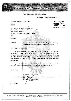 La Municipalidad Provincial de Oxapampa remite al MINAM las actividades desarrolladas el 2017 en el marco del Programa Municipal EDUCCA- Oxapampa aprobado con Ordenanza Municipal N° 397-2017-MPO el 26 de octubre del 2017.