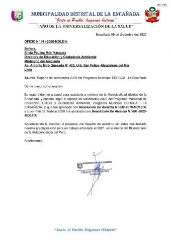 Reporte 2020 Programa Municipal EDUCCA - Municipalidad Distrital de la Encañada