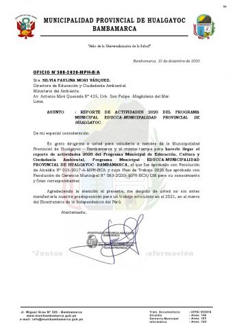 Reporte 2020 Programa Municipal EDUCCA - Municipalidad Provincial de Hualgayoc