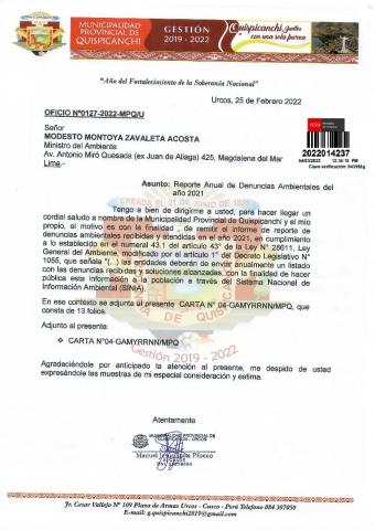 Denuncia ambiental 2022 de la Municipalidad Provincial de Yungay