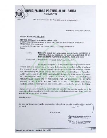 Reporte anual de denuncias ambientales recibidas y atendidas por la Gerencia de Gestión Ambiental de la Municipalidad Provincial del Santa en el año 2020