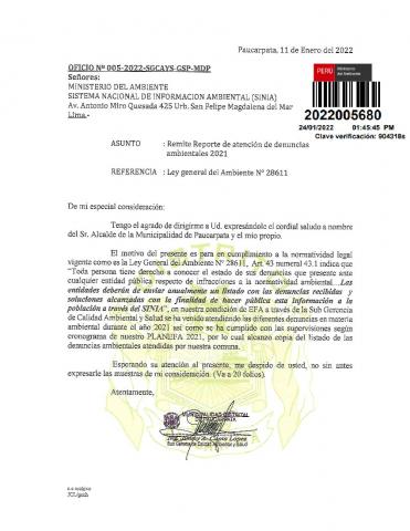 Información sobre denuncias ambientales de la Municipalidad Distrital de Sabandía