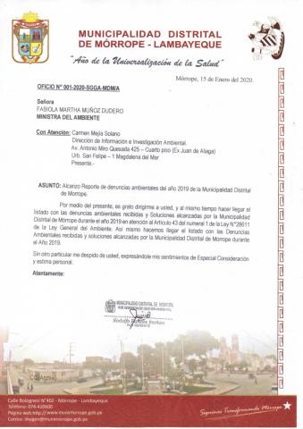 Reporte de denuncias ambientales del año 2019 de la Municipalidad Distrital de Morrope