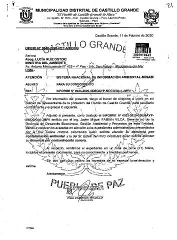 Información sobre denuncias ambientales de la Municipalidad Distrital de Sabandía
