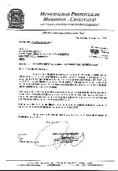La Municipalidad Provincial de Morropón hace llegar al MINAM su reporte de denuncias ambientales correspondiente al año 2015, la misma que se hace de conocimiento público a través de SINIA de conformidad con lo establecido en la Ley n° 28611.