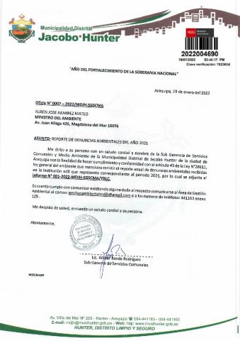 Reporte de denuncias del año 2021 de la Municipalidad Distrital Jacobo Hunter