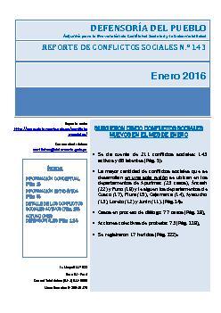 El documentop recoge la información proporcionada por los actores intervinientes en los conflictos sociales, a través de las 28 oficinas defensoriales y los 10 módulos de atención al público que tiene la institución, complementanda y contrastada con otras fuentes.