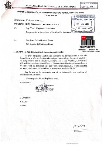 Resumen de denuncias ambientales atendidas durante el año 2021 de la Municipalidad Provincial de Lambayeque