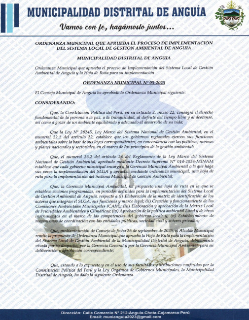 Ordenanza Municipal N° 05-2025 ANGUIA
