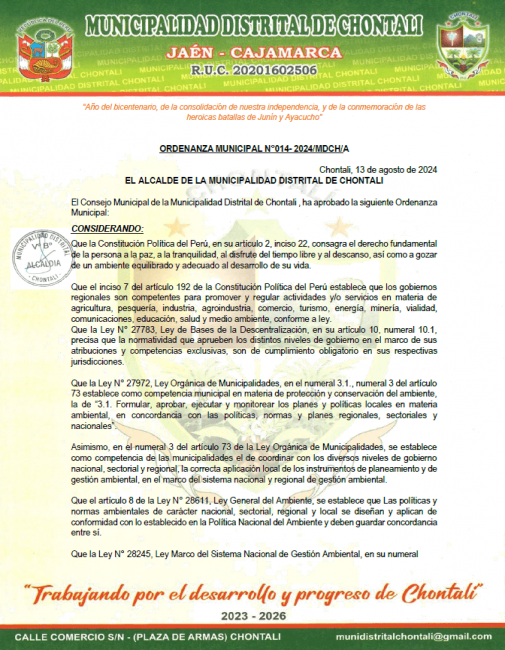 Ordenanza Municipal N° 014- 2024/MDCH/A